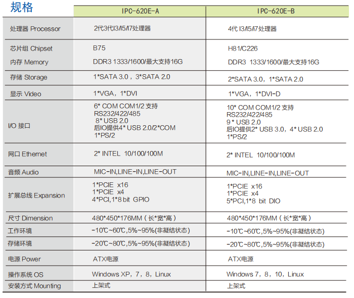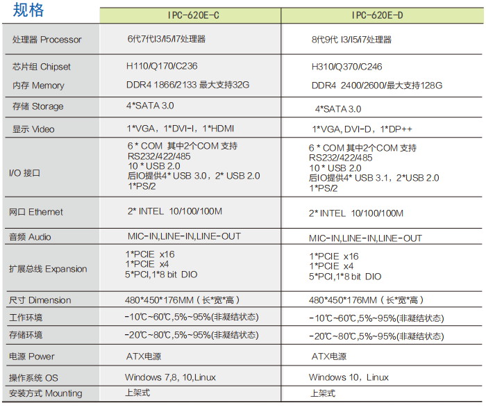 IPC-620E 是一款4U上架式工控机,支持标准大母板、长卡加底板。选可广泛应用于通讯、金融、电力、交通、工业自动化各领域。
